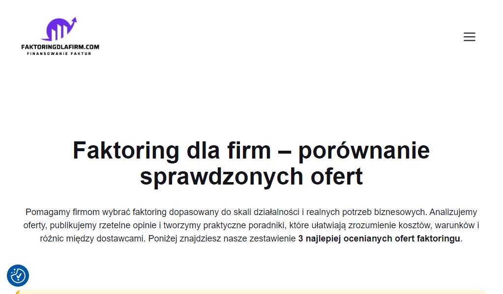 Faktoringdlafirm.com to serwis, który pomaga przedsiębiorcom znaleźć najlepsze rozwiązania finansowe dopasowane do potrzeb działalności. Na stronie można szybko sprawdzić aktualne oferty faktoringu, porównać koszty oraz wybrać najkorzystniejsze warunki współpracy.